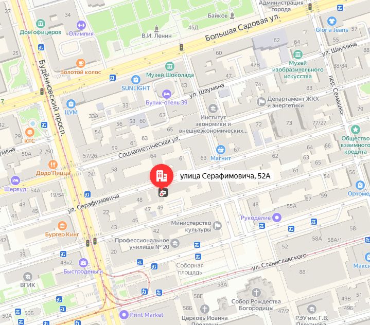 Фактический адрес:344010, г.Ростов-на-Дону, ул. , Серафимовича 52А