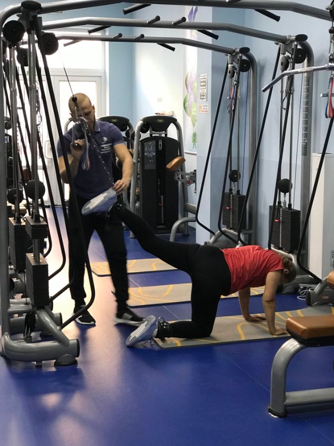 Лечение с помощью правильного движения лежит в основе одного из разделов Лечебной Физической Культуры - механотерапии или кинезиотерапии (ЛФК), т.е. лечению с помощью правильно подобранной индивидуально для каждого нашего пациента нагрузки на тренажерах. Почему именно тренажеры? Именно тренажеры являются совершенно безопасным видом движения, так как не создают при правильно составленной программе лечения болевых ощущений. Тренажеры дают возможность локально прорабатывать больные участки или, наоборот, избегать нагрузок на определенные зоны. Тренажеры не создают опасных осевых нагрузок на позвоночник и не вызывают "скручивающие" элементы при движении. Тренажеры оптимальный выбор для неспортивных, пожилых людей и детей, потому что даже у людей, далеких от спорта, можно прогнозировать движения, так как каждый тренажер рассчитан на определенный тип нагрузки и на определенную амплитуду движения. Конечно, не все тренажеры подходят для лечебных и реабилитационных программ ЛФК. Траектории движения на тренажере должны точно воспроизводить амплитуду работы сустава. На части тренажеров должны быть ограничительные приспособления, которые дают возможность инструкторам подбирать подходящие углы работы суставов при болевых ощущениях или контрактурах. Тренажеры должны иметь приспособления для облегчения старта и финиша во время занятий - дополнительный фактор безопасности. Полностью этим требованиям отвечает реабилитационное оборудование, которым оснащен зал Нашего Центра " Я ЗДОРОВ!"